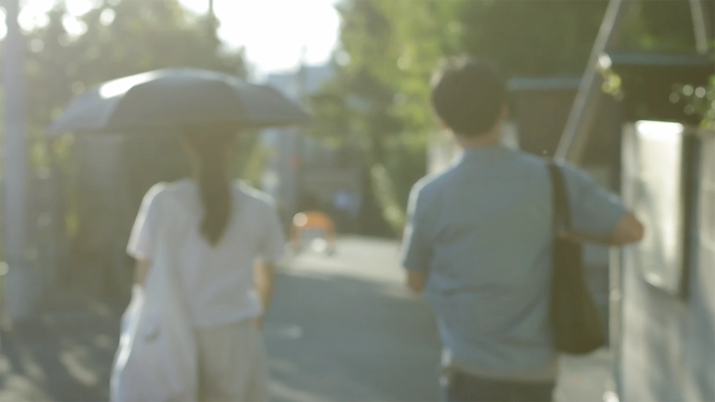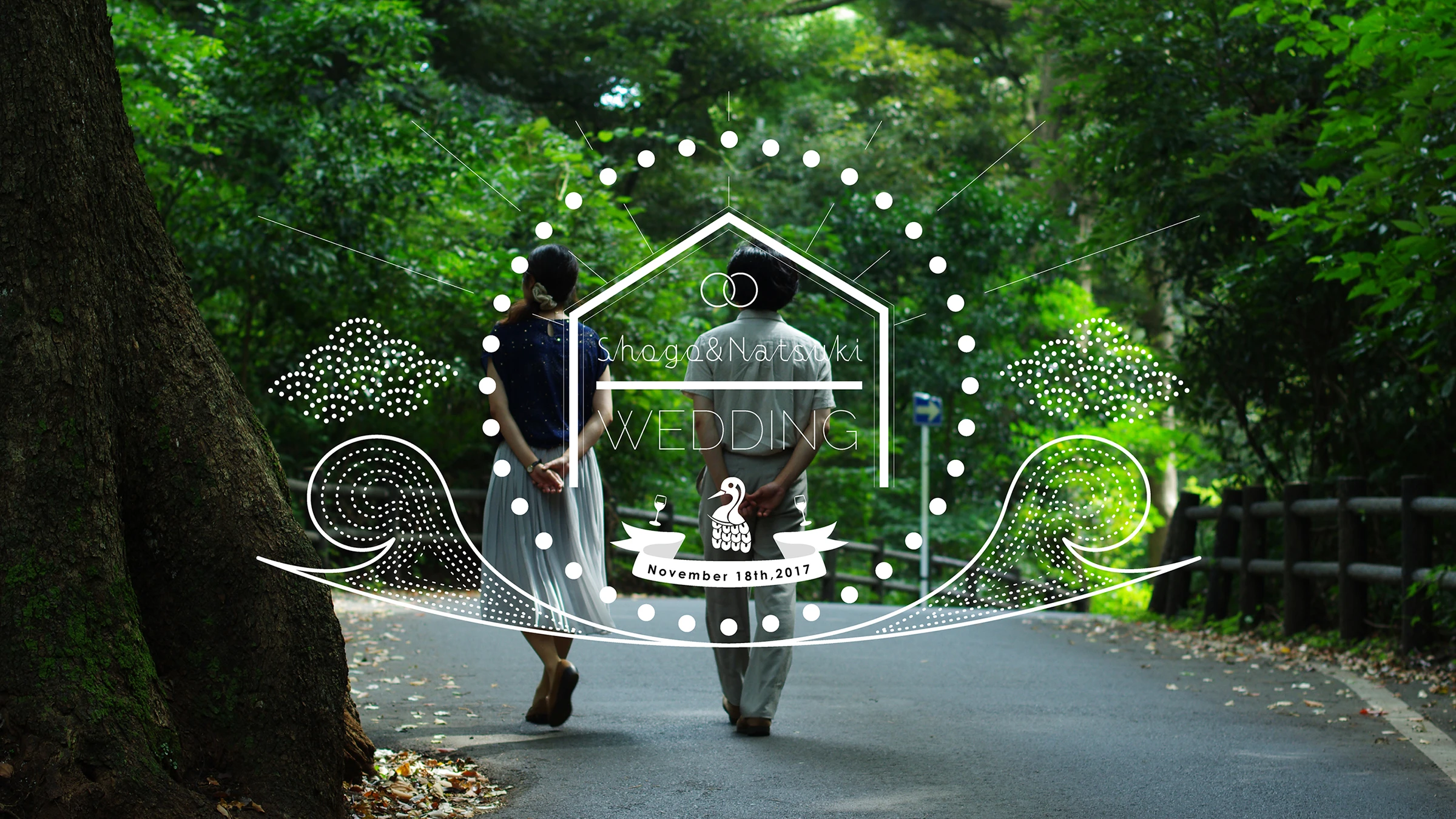 結婚式らしい派手な演出ではない形式にしたいという二人のリクエスト。二人がよく行く場所や好きな場所を巡りながら、普段の表情や二人で過ごす時間や空間を私たちが追体験する構成になっている。見終えたあとに、それぞれの”人となりのイメージ”を掴めるような表現を目指し、その雰囲気をロゴにも表現した。 オープニング同様の雰囲気を保ちつつ、二人が今日一日のことを回想する構成にすることで、見ている私たちも、二人のことはもちろん、披露宴の当日のことを回想できるような表現を目指した。