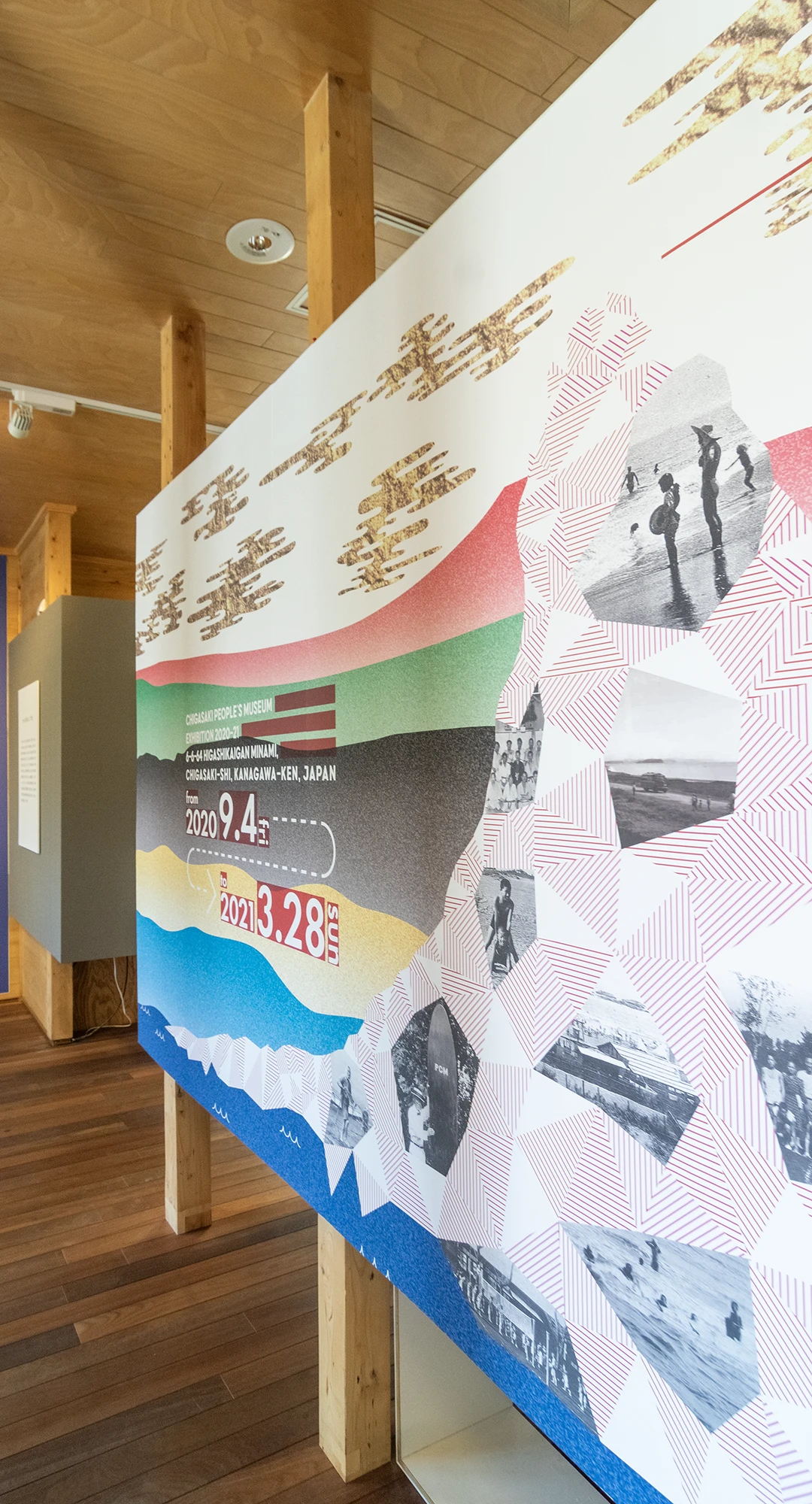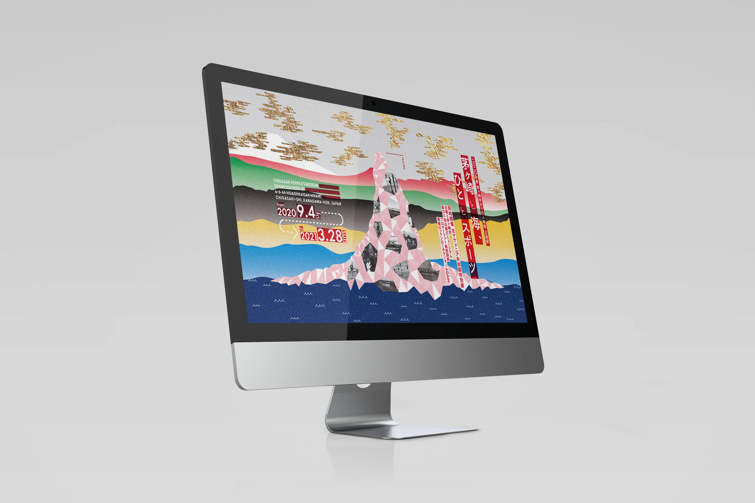 茅ヶ崎のシンボルとなっている烏帽子岩をメインモチーフに、烏帽子岩がこれまで見てきた茅ヶ崎の街や人々の営みを追想するイメージを海側からの風景としてビジュアルに表現しています。企画展開催年がオリンピック開催年(後に1年延期)だったこともあり、背景にオリンピックカラーを使用しています。