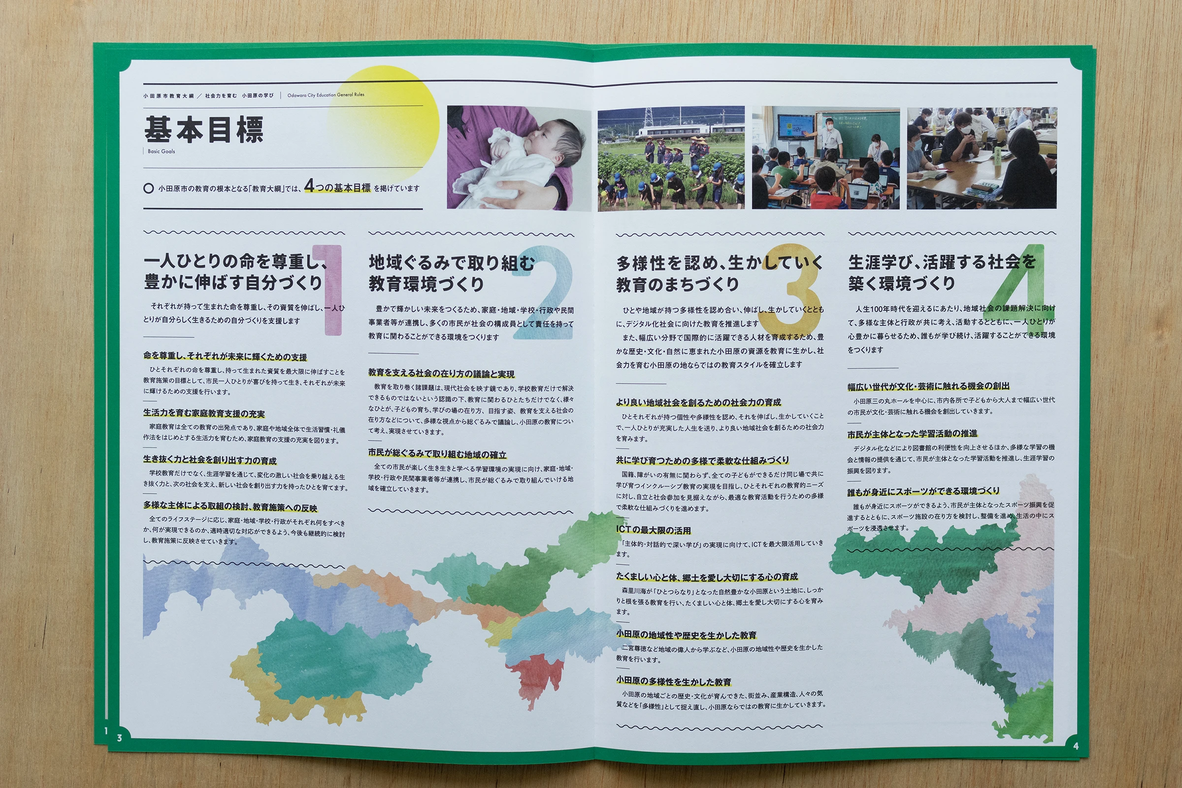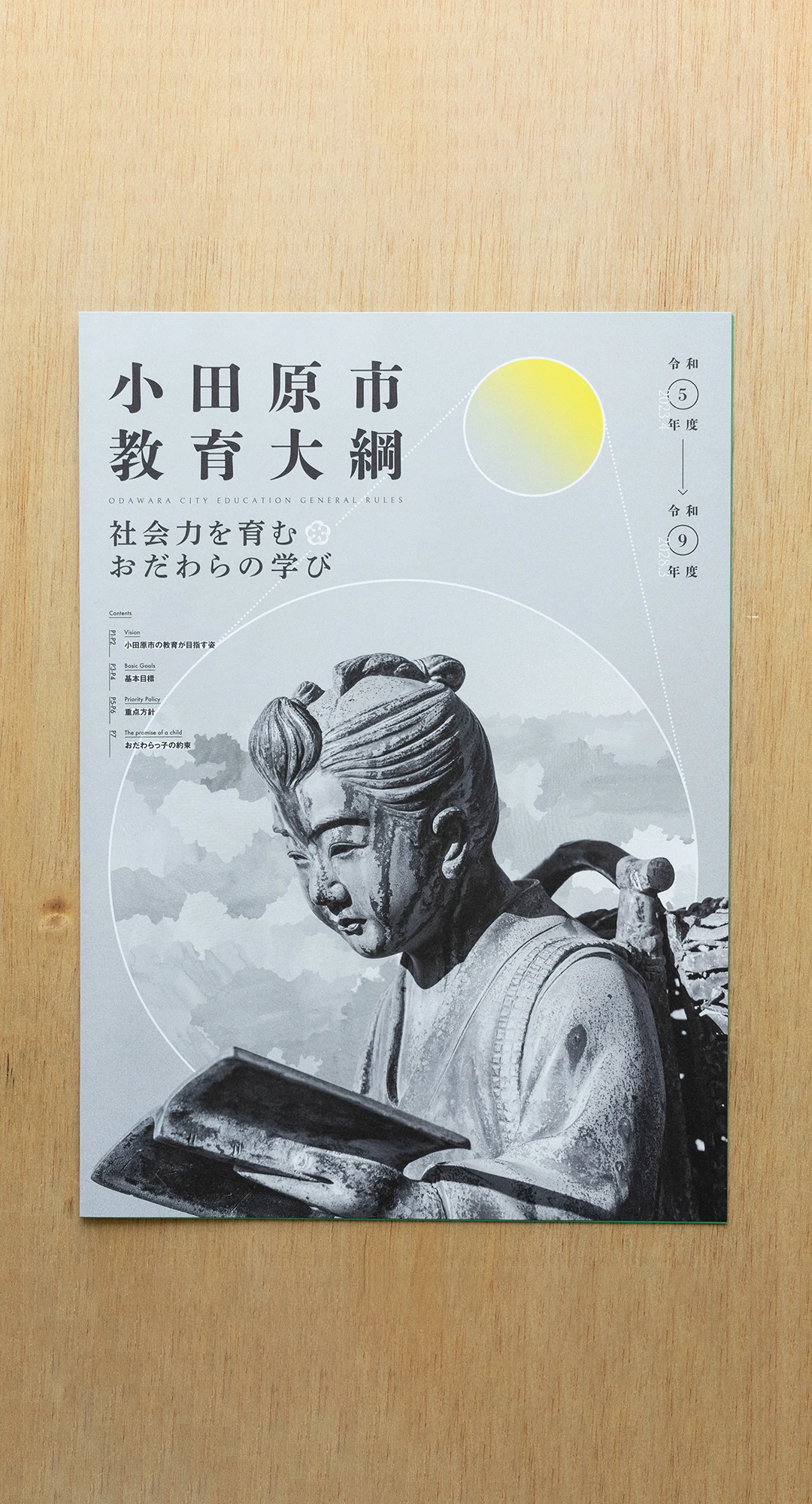5年に一度改訂される、小田原市の教育、学術、文化について、その目標や施策の根本となる方針を定めた「小田原市教育大綱」のアートディレクションおよびデザインを担当させていただきました。