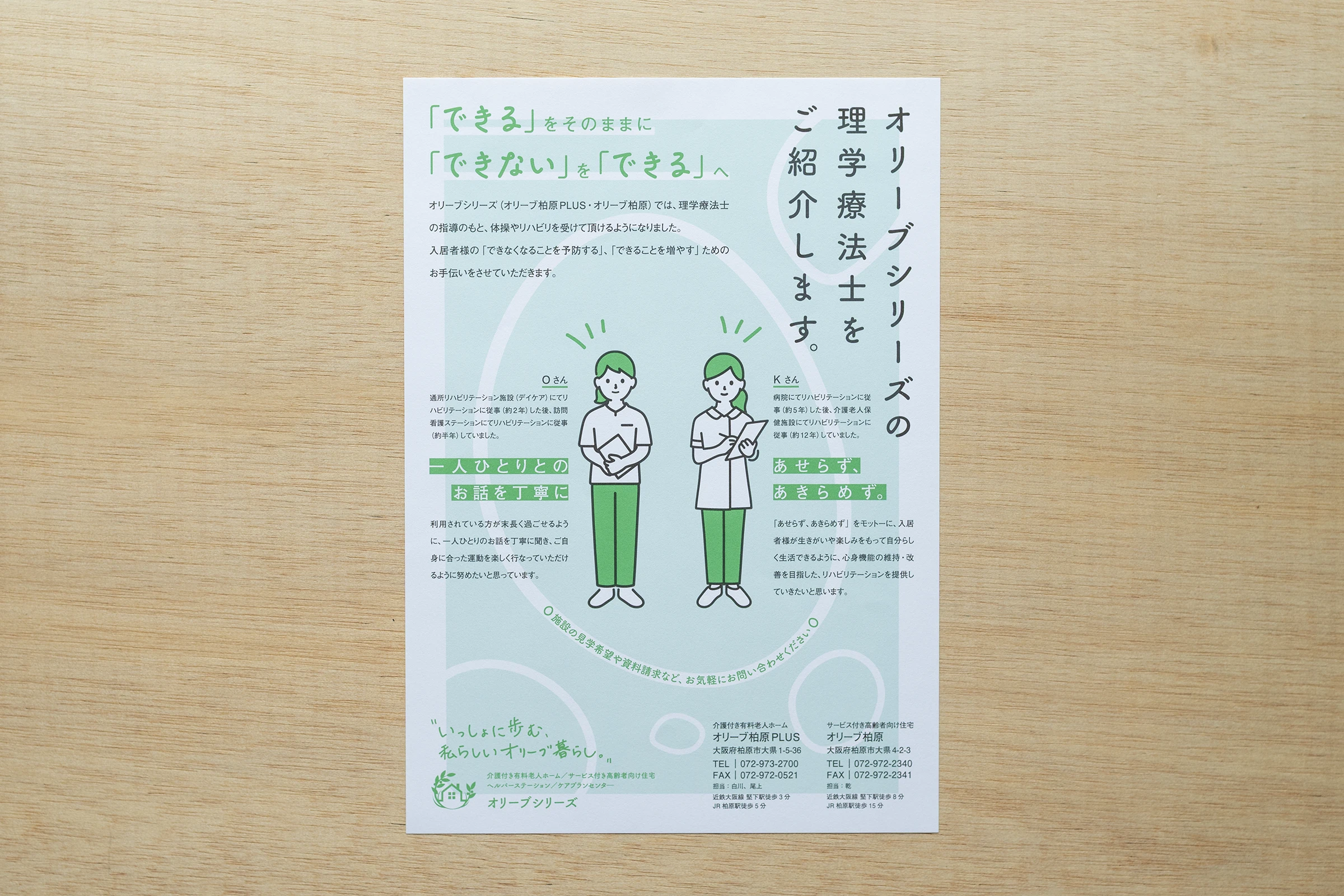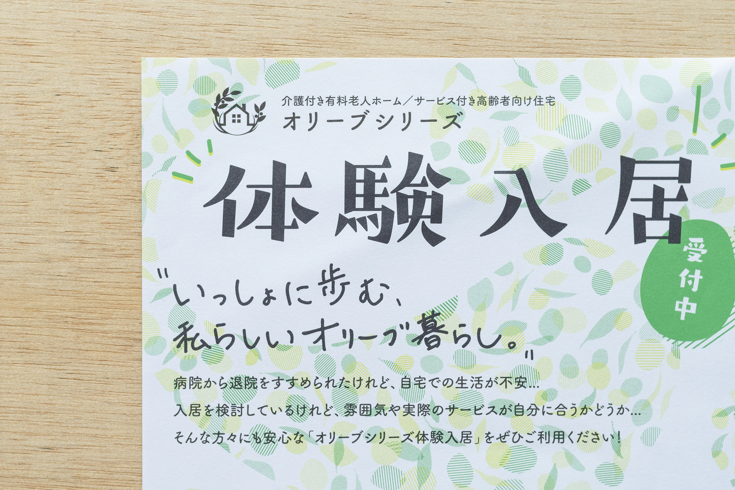 高齢者福祉のトータルサービスを提供しているオリーブシリーズの広報フライヤーのデザインを担当させていただきました。