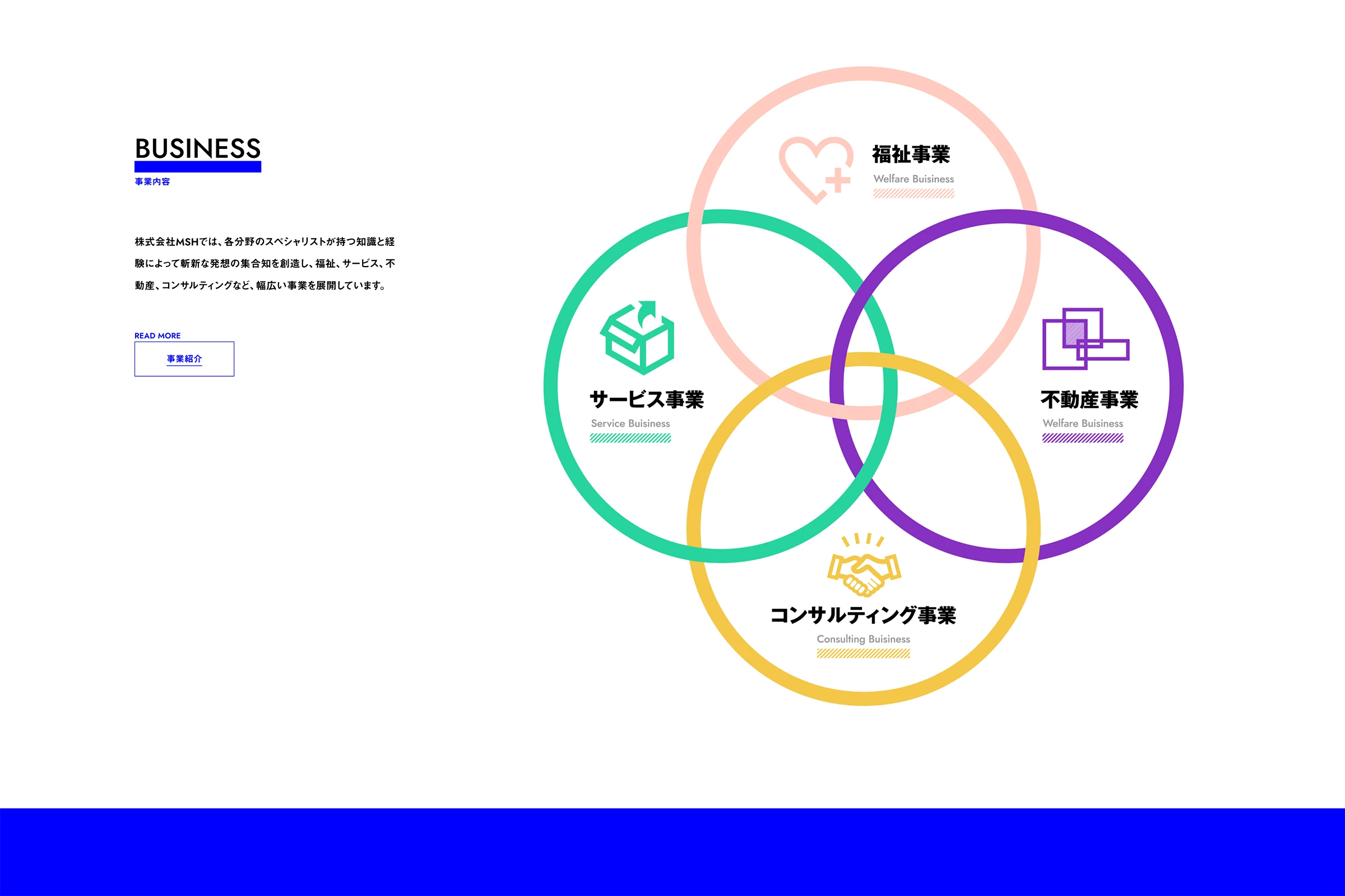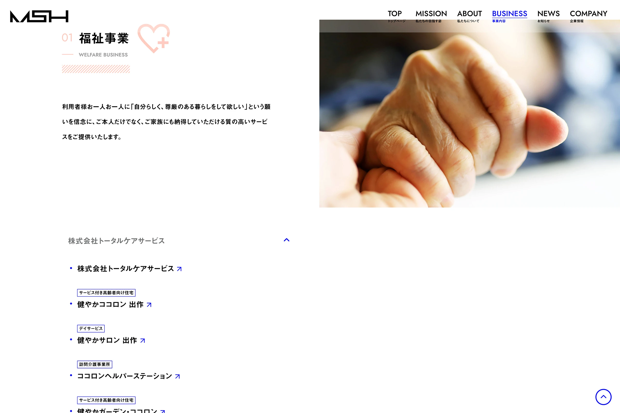 福祉、サービス、不動産、コンサルティングなど、複合的に事業展開をしている株式会社MSH様のウェブサイト制作を担当させていただきました。