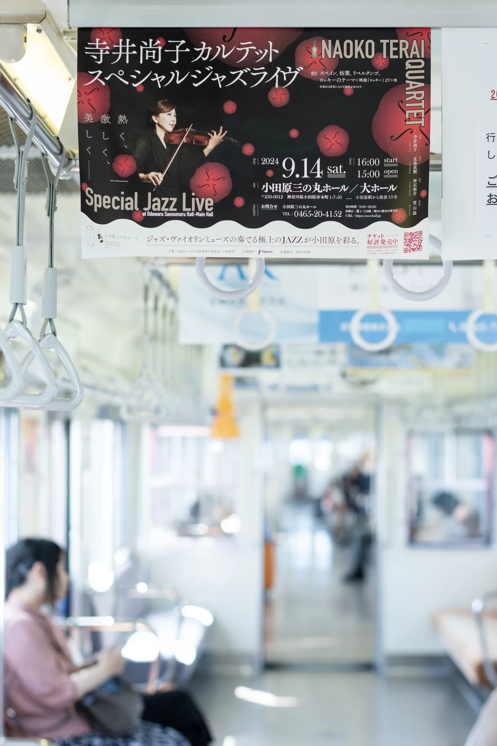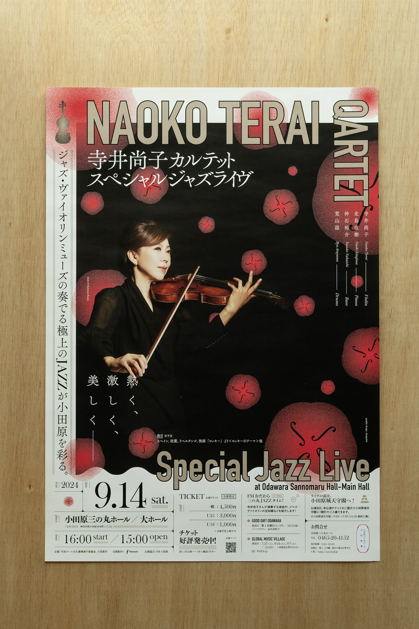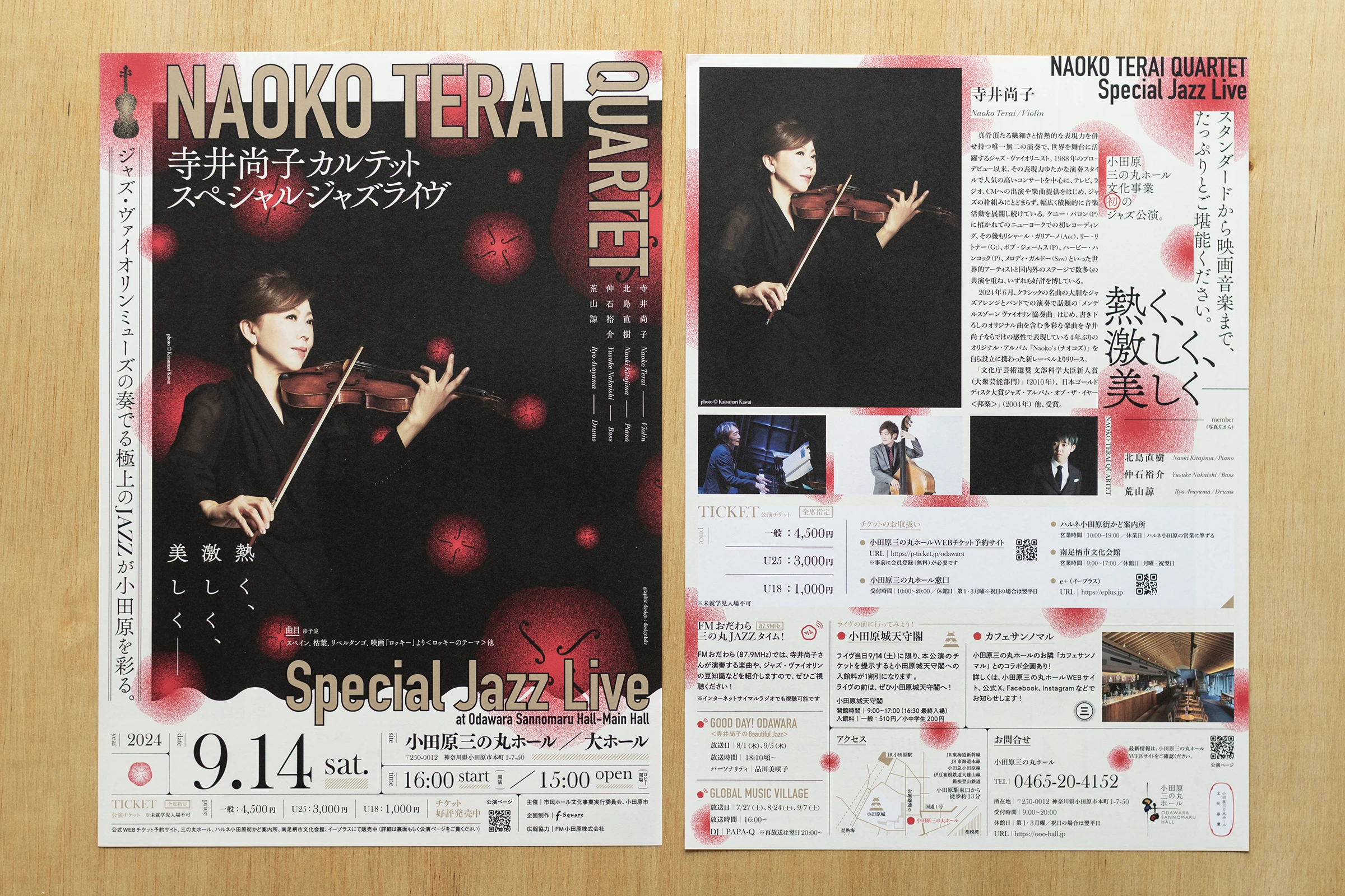 小田原城の目の前、小田原三の丸ホールで開催された、バイオリンミューズ寺井尚子さんのJAZZライヴの広報グラフィックを担当させていただきました。