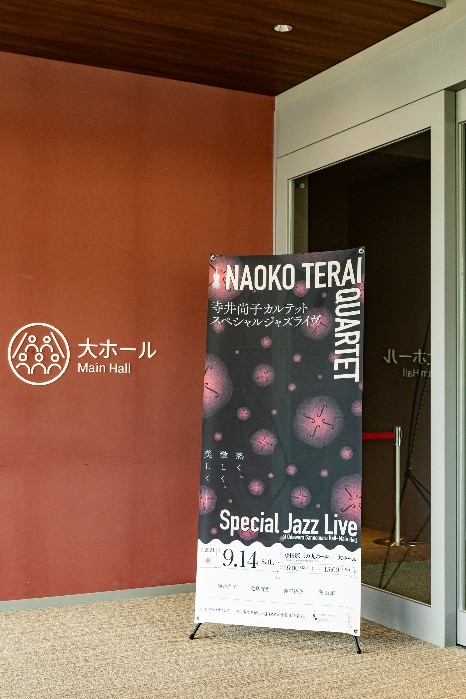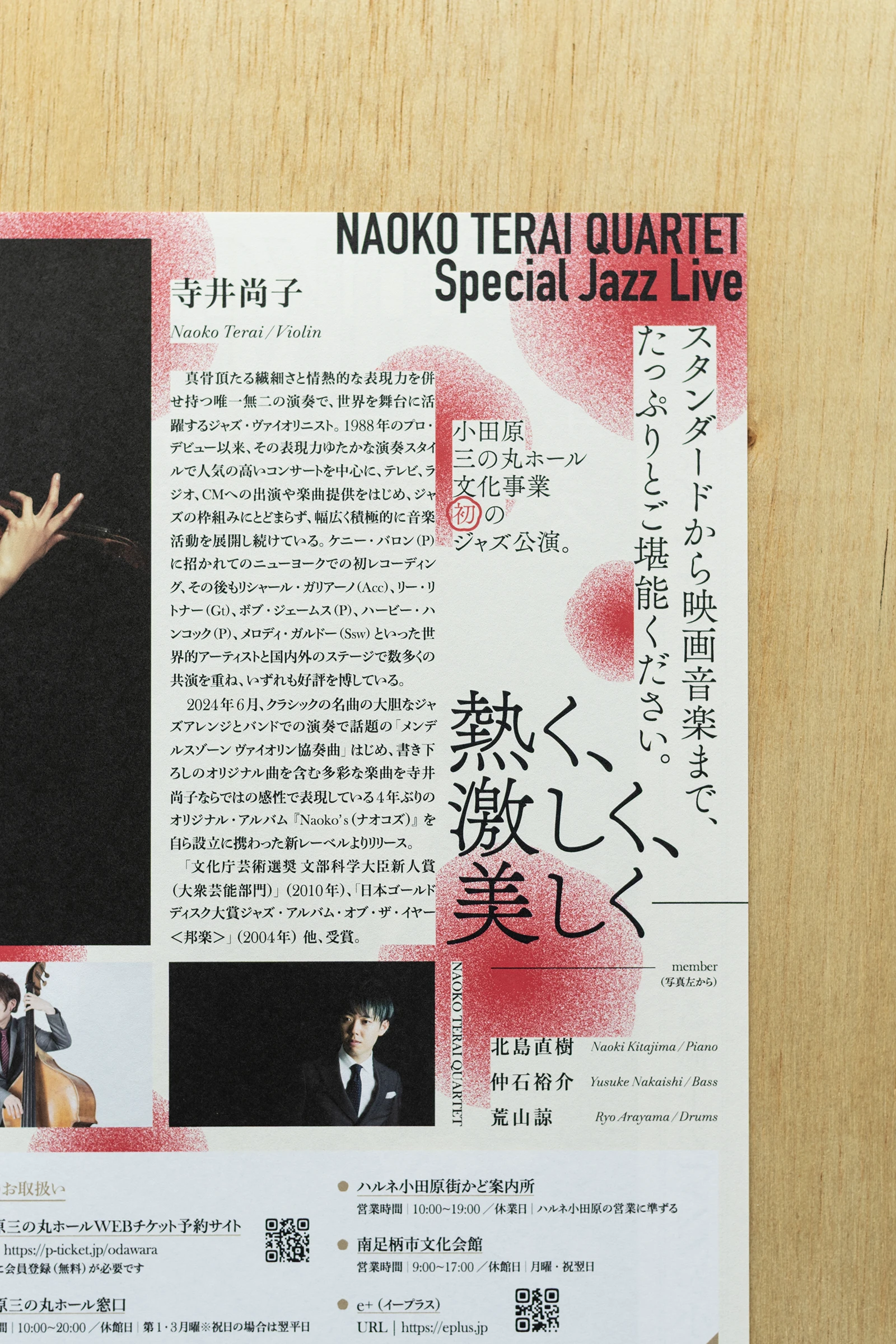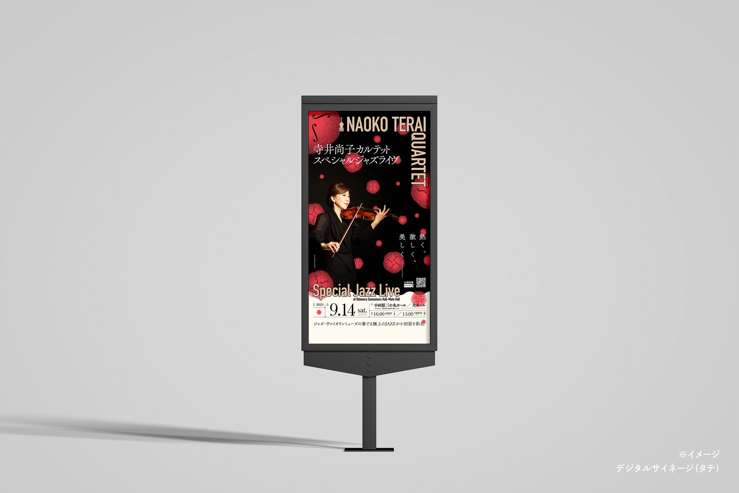 小田原城の目の前、小田原三の丸ホールで開催された、バイオリンミューズ寺井尚子さんのJAZZライヴの広報グラフィックを担当させていただきました。