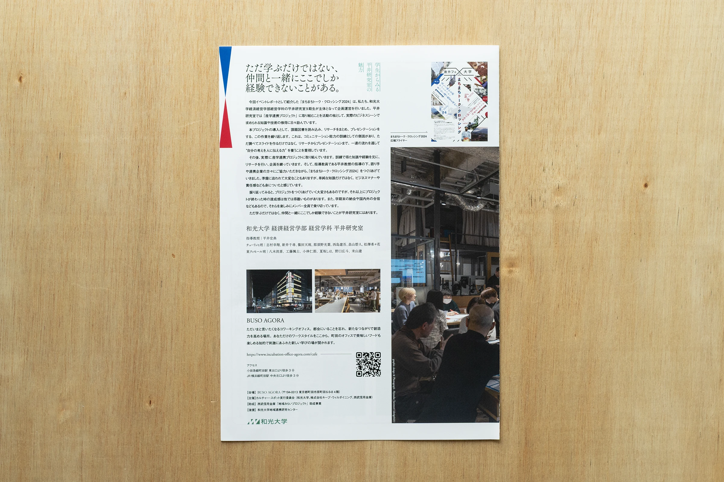 2日間に渡って開催された「まちまちトーク・クロッシング2024」のイベント撮影、イベントレポートのデザインを担当させていただきました。このイベントレポートは、和光大学のオープンキャンパスや広報等、今後も広く使われる予定です。
