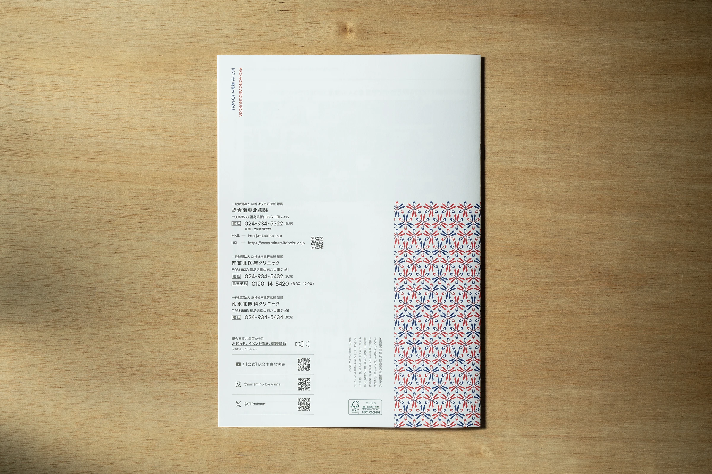 福島県郡山市にある一般財団法人 脳神経疾患研究所附属 総合南東北病院の病院案内パンフレットの制作を担当させていただきました。
